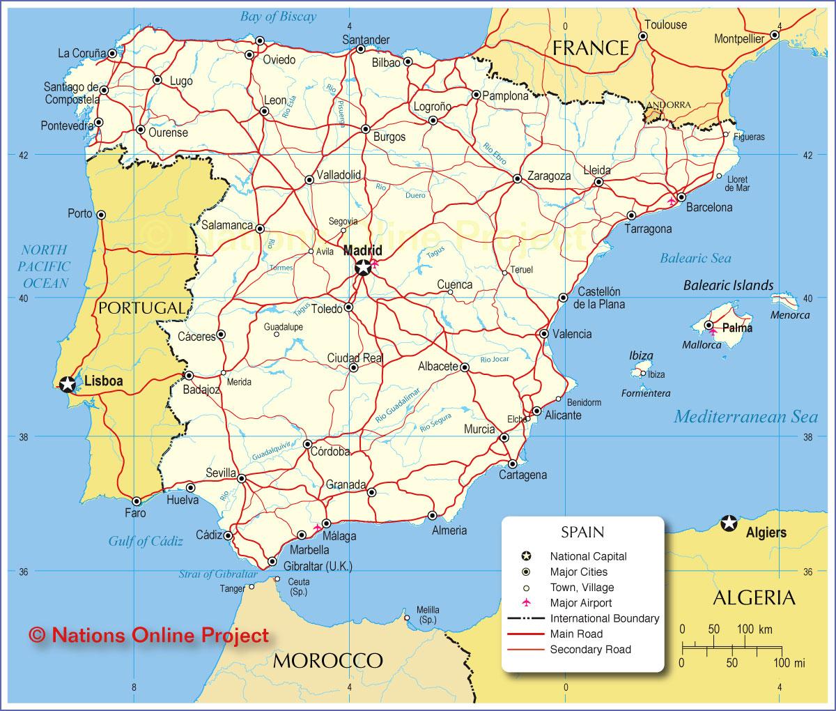 خريطة اسبانيا النقل. إسبانيا ينقل خريطة (جنوب أوروبا - أوروبا) إلى الطباعة. إسبانيا ينقل خريطة (جنوب أوروبا - أوروبا) لتحميل. يتميز النقل في إسبانيا بشبكة واسعة من الطرق والسكك الحديدية والنقل السريع والطرق الجوية والموانئ. موقعها الجغرافي يجعلها حلقة وصل مهمة بين أوروبا وأفريقيا والعالم الجديد. أشكال رئيسية من العبور تشع عموما من العاصمة مدريد، وتقع في وسط البلاد، لربط مع عواصم المجتمعات المتمتعة بالحكم الذاتي كما هو مبين في اسبانيا نقل الخريطة. إسبانيا تمتلك نظام طريق سريع متطور للغاية، مع كل من الطرق السريعة و التي يتم فرضها.